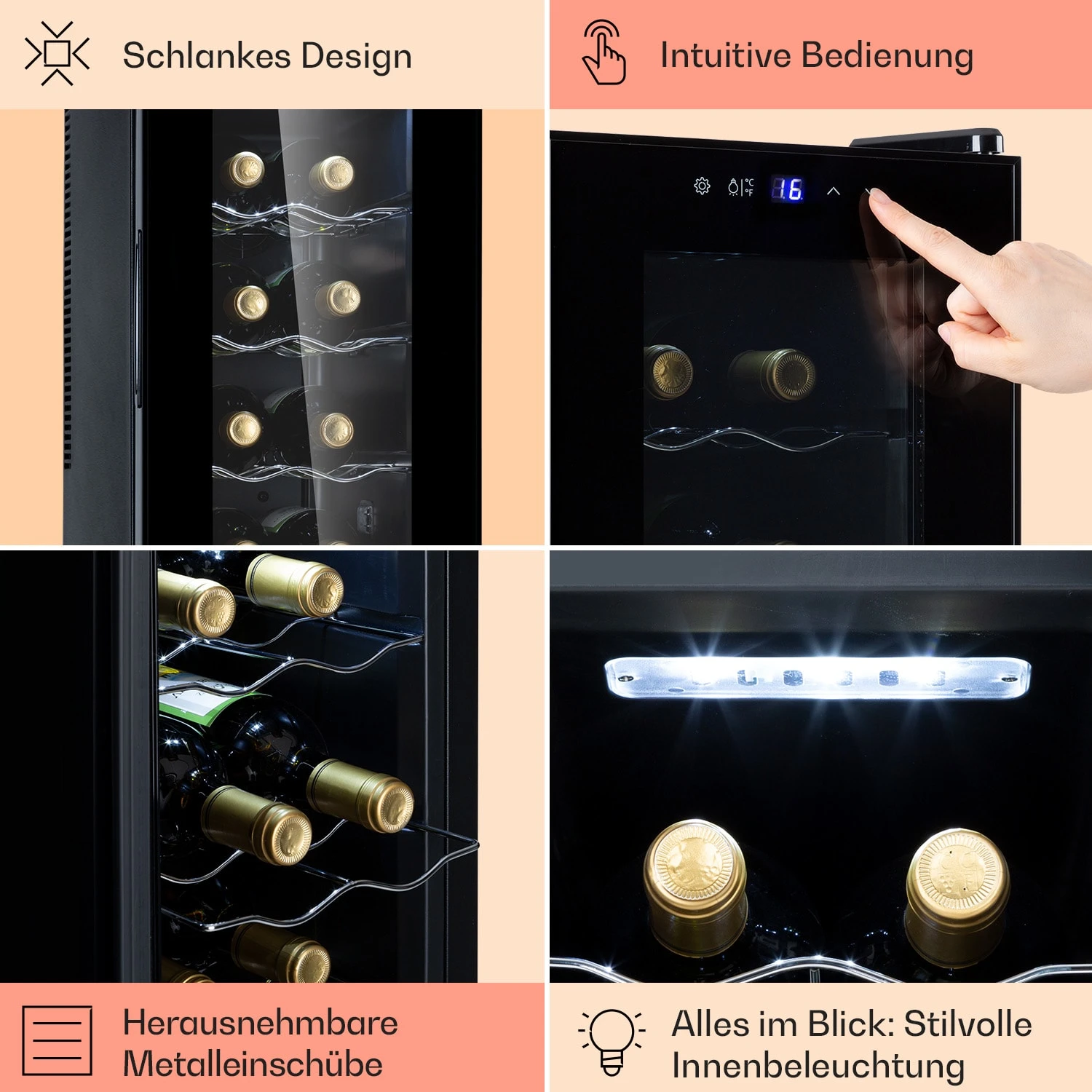 Praktisch, formschön und überall ein Blickfang: der Weinkühlschrank Barolo 14 Slim Uno von Klarstein.