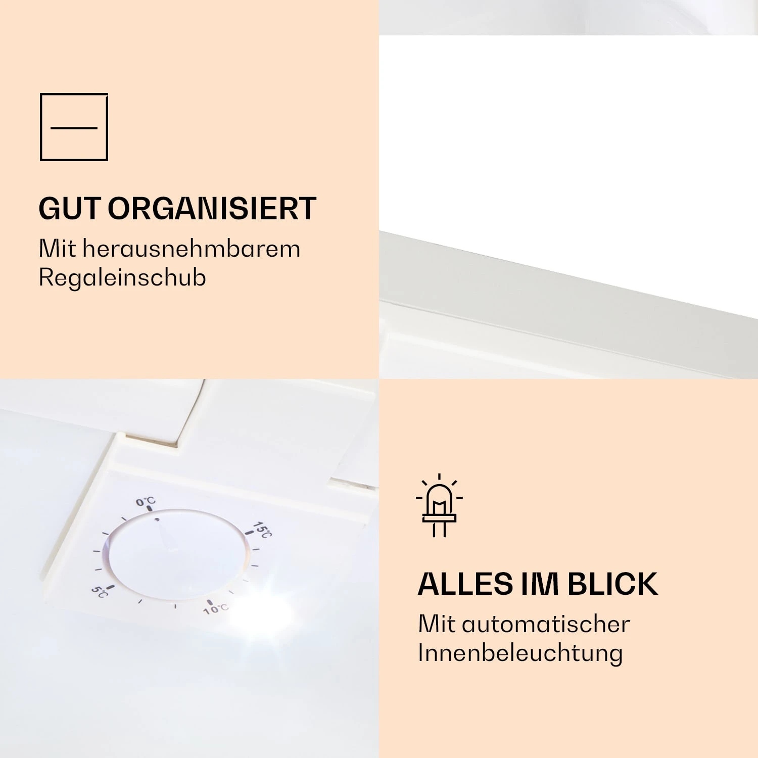 - Kühlbereich: 4,5° bis 15° C